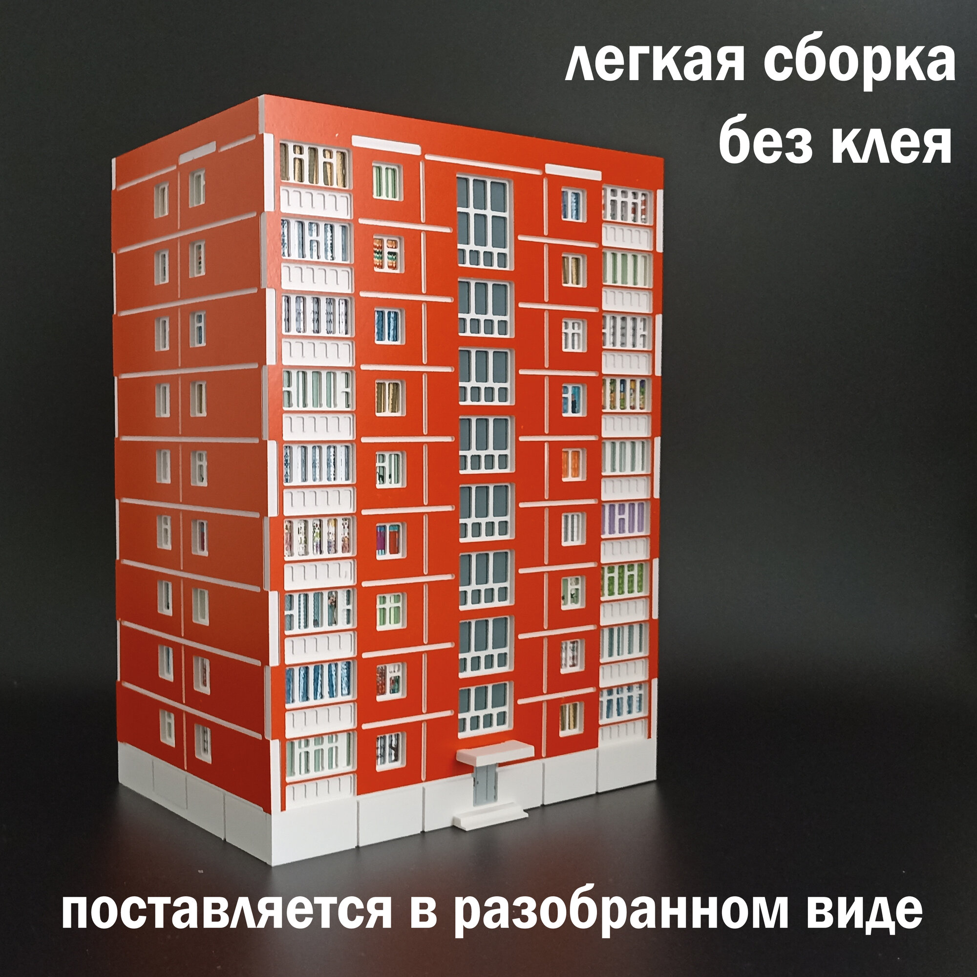 Ночник декоративный "Домик - панелька 9 этажей" красный информация: