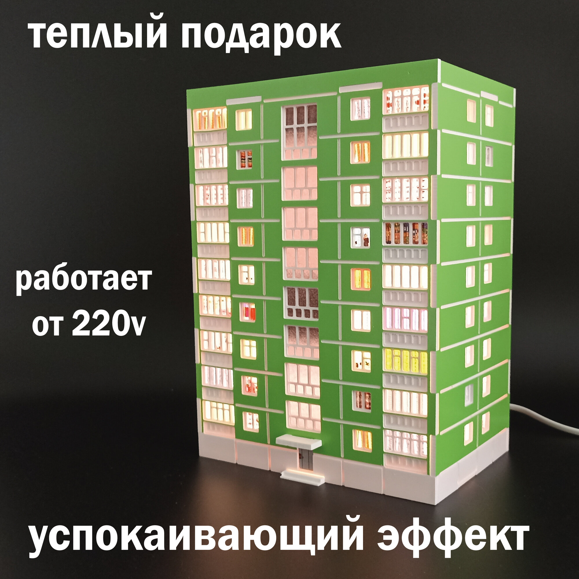 Ночник декоративный "Домик - панелька 9 этажей" зеленый информация: