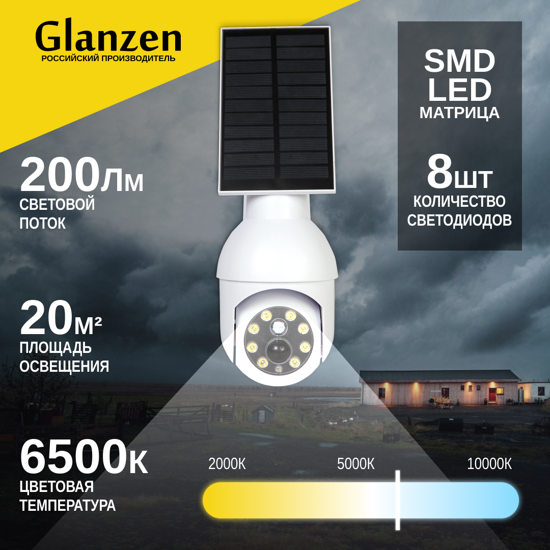 Отзывы на Светодиодный уличный светильник на солнечной батарее с датчиком движения и освещенности GLANZEN RPD-0200-1200-solar садовый прожектор под камеру (муляж)