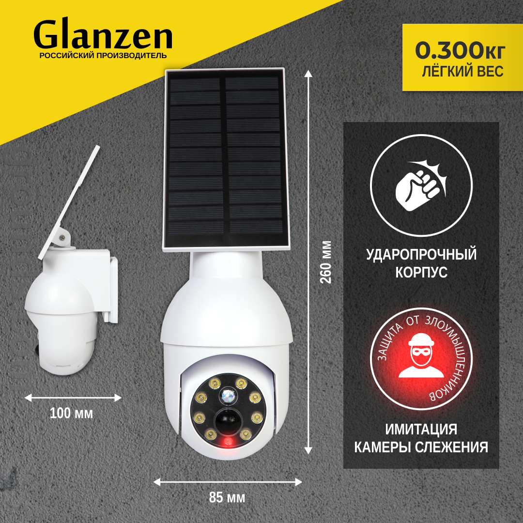 Светодиодный уличный светильник на солнечной батарее с датчиком движения и освещенности GLANZEN RPD-0200-1200-solar садовый прожектор под камеру (муляж) информация: