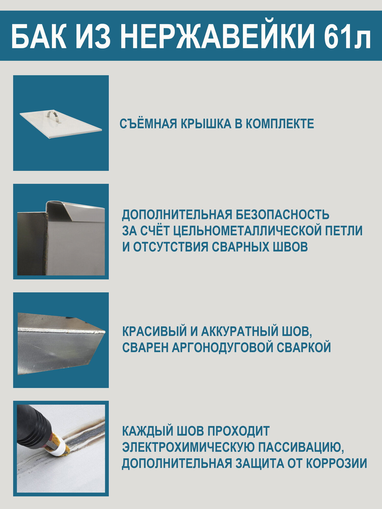 Бак из нержавеющей стали AiSi430 с крышкой, объем 61 литр, сгон слева информация: