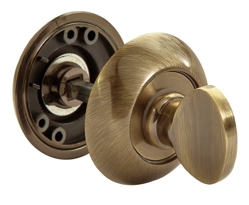 Ручка-защелка дверная межкомнатная (кноб) с фиксатором без ключей стандарт 607 BK AB бронза