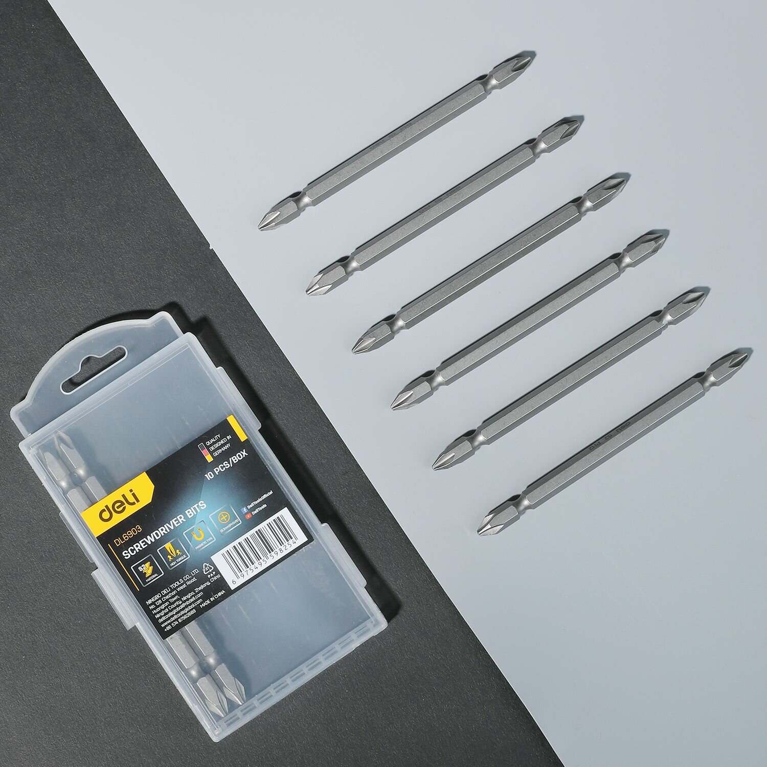 Набор двухсторонних бит 10 шт Deli DL6903 PH2*110мм, сталь S2 с твердостью 58-60HRC, пласт.кейс информация: