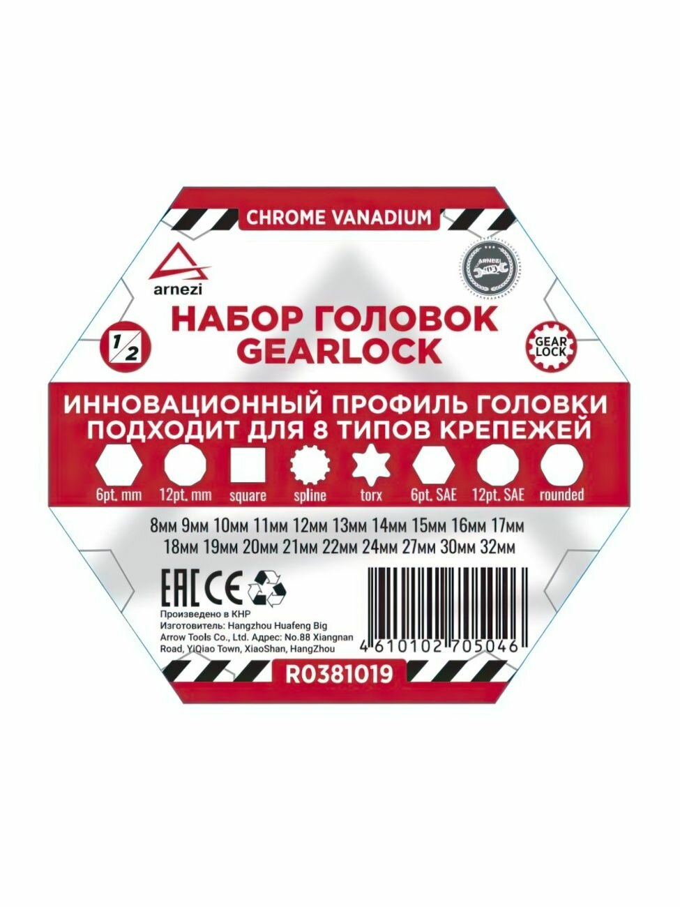 10 цен на ARNEZI R0381019 Набор головок 1/2" 19 пр. Gear Lock подходит для 8 типво крепежей ARNEZI R0381019
