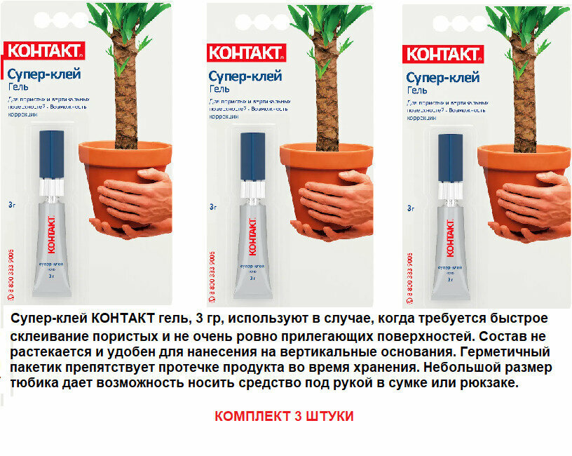 Супер-клей, секундный клей "контакт" гель, 3 г (комплект 3шт) информация: