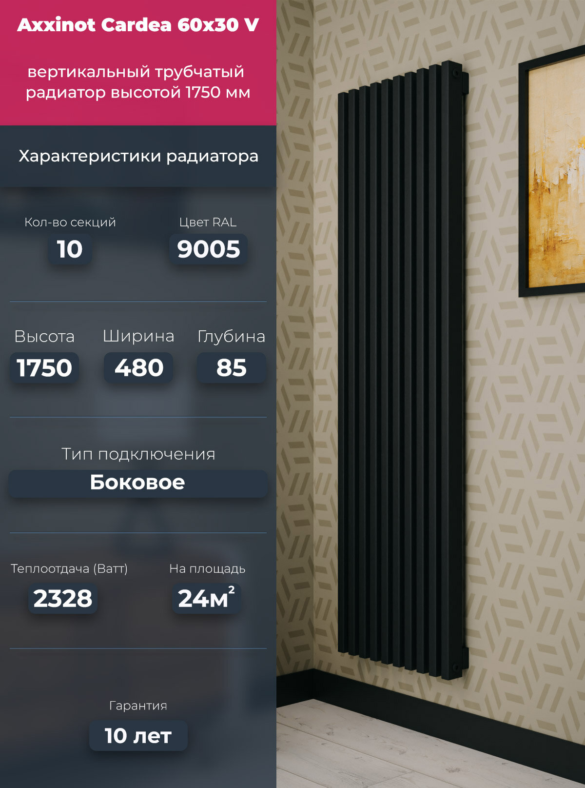 Axxinot Cardea 60х30 V 1750 черный с боковым подключением 10 секций черный информация: