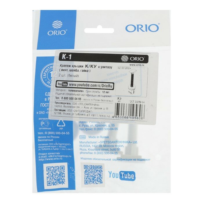 Крепеж для сидения унитаза Orio К-1, белый информация: