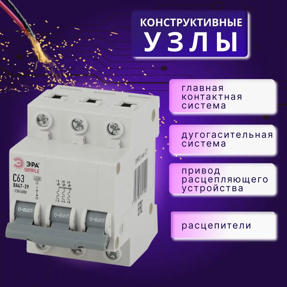 Автомат 3P 63А (C) ВА 47-29 Б0039244 ЭРА SIMPLE-mod-27 выключатель - 2шт информация: