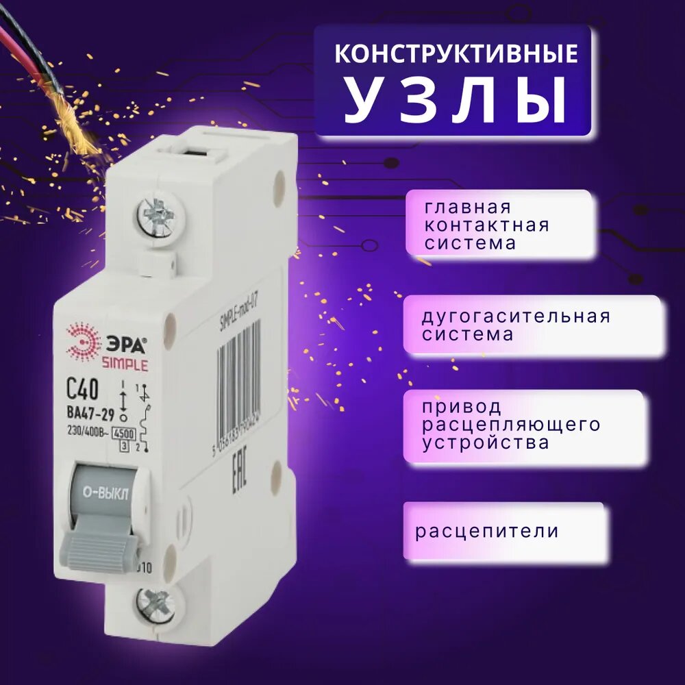 Автомат Б0039224 ЭРА SIMPLE-mod-07 1P 40А (C) 4,5кА выключатель ВА 47-29 12ШТ информация: