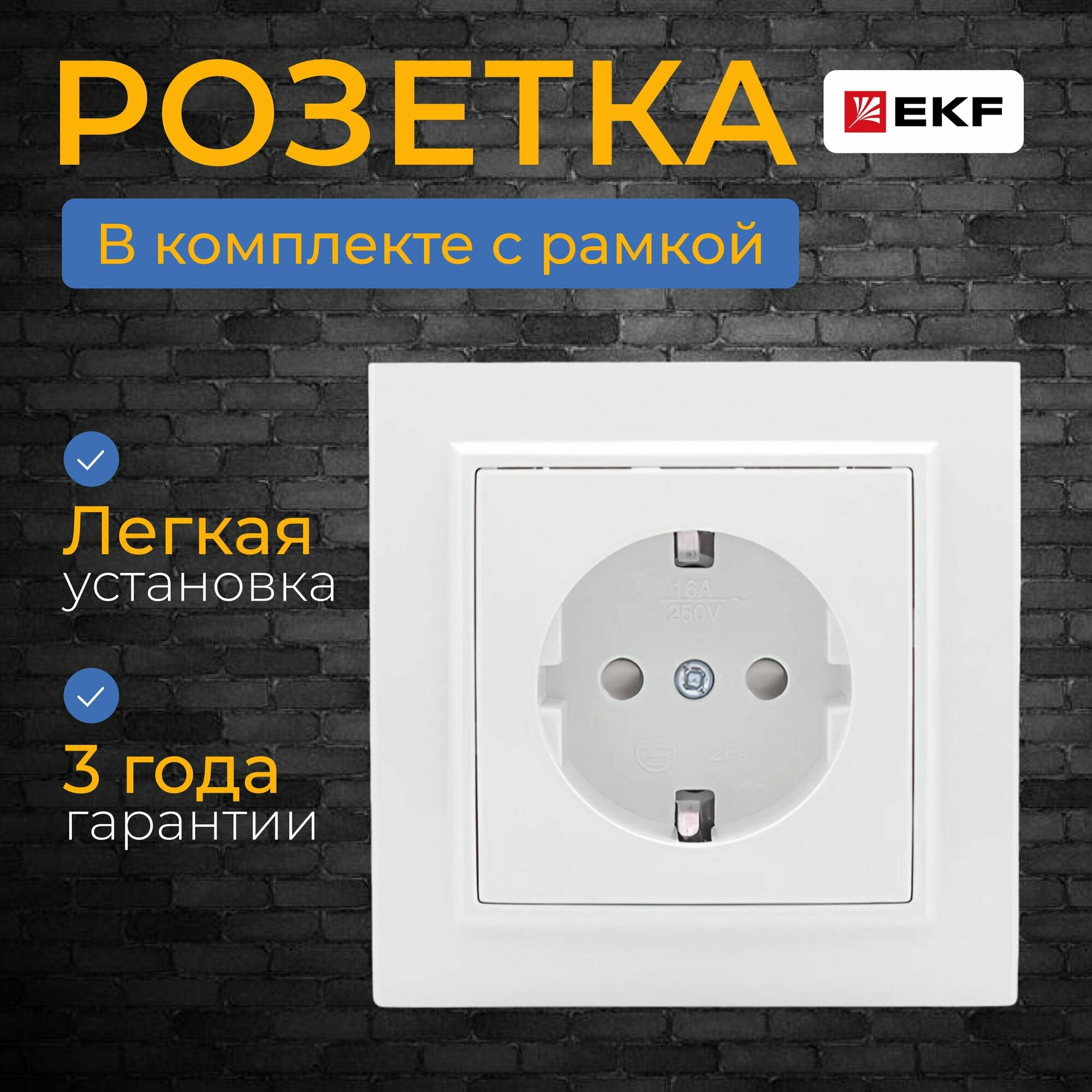 Розетка двухместная минск, скрытый монтаж, с заземлением, со шторками, белый | код. ERR16-128-100 | EKF (10шт.в упак.)