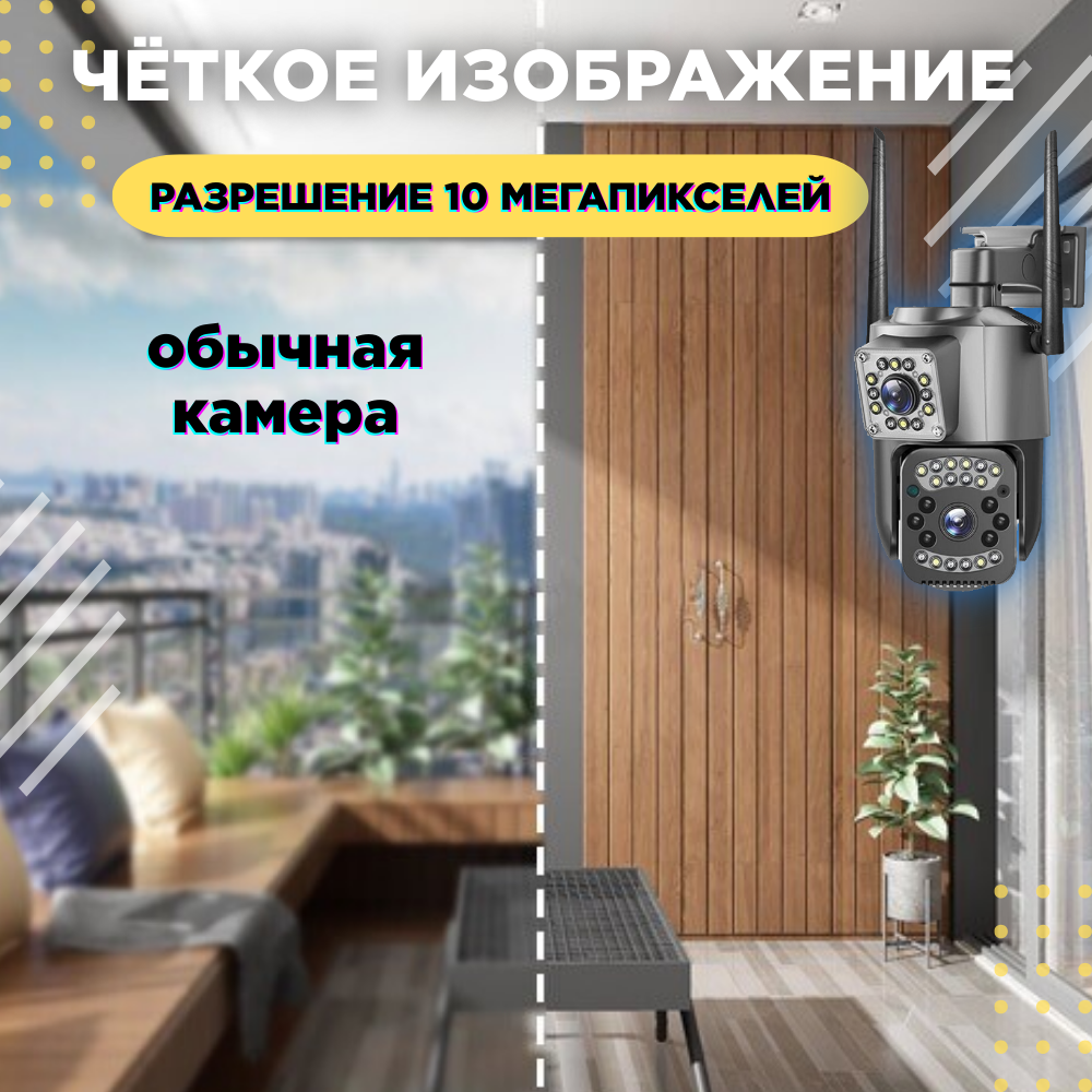 10 цен на Камера видеонаблюдения уличная 4G с сим-картой 10Мп, поворотная IP видеокамера с датчиком движения, режимом ночной съемки и обратной связью