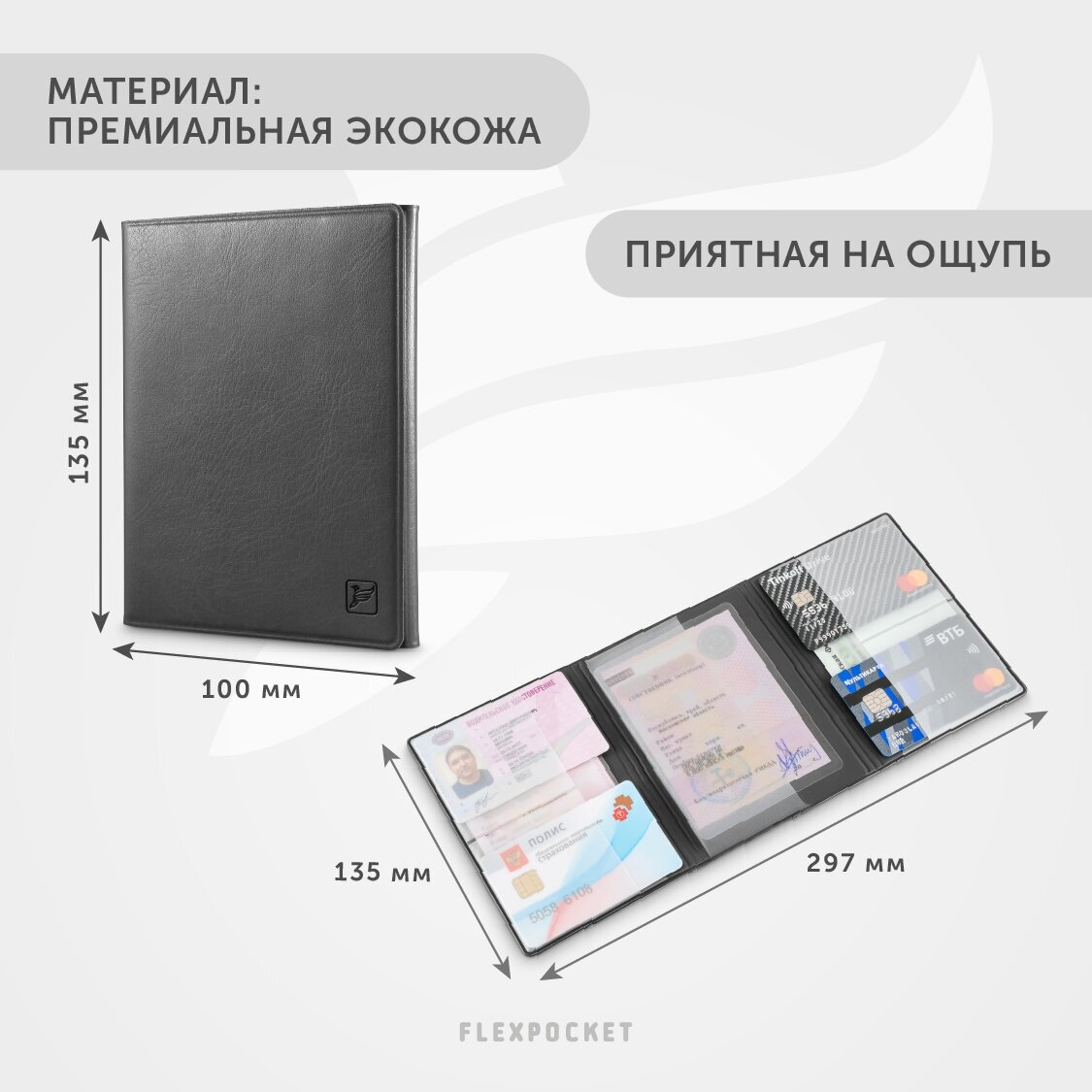 Документница для автодокументов Flexpocket, темно-серый 626 ₽