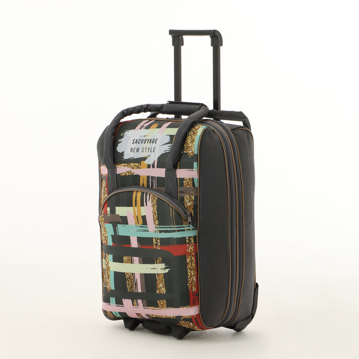 Чемодан малый 20" с сумкой, отдел на молнии, с расширением, цвет чёрный