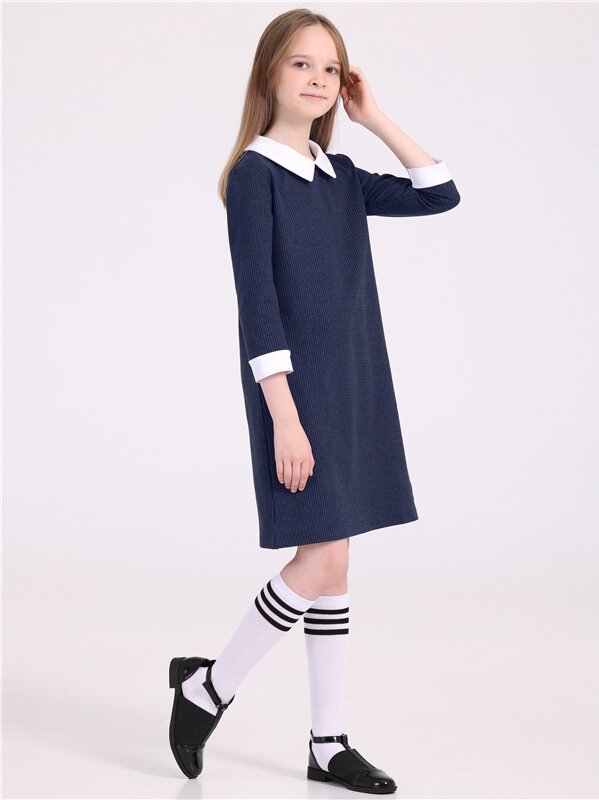 Платье для девочки школьное синее трикотажное с воротником Апрель 1ДПД868258н/989/*/5157/*/*/*/* синий,белый 68-134 информация: