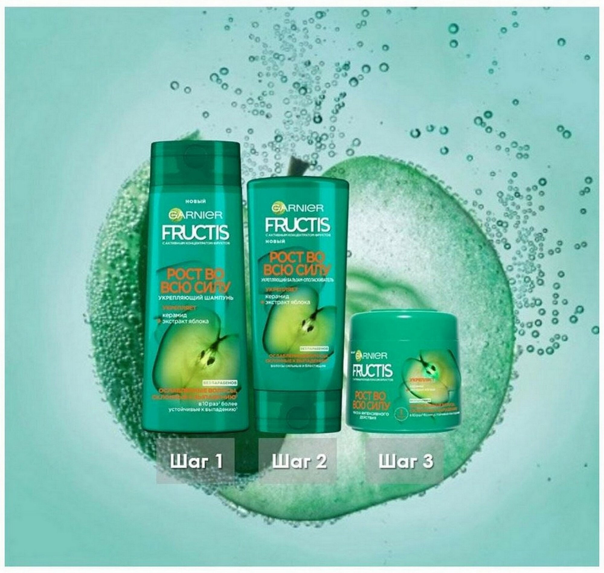 GARNIER Бальзам-ополаскиватель Fructis Рост во всю силу Укрепляющий для ослабленных волос, склонных к выпадению, 200 мл - 3 шт информация: