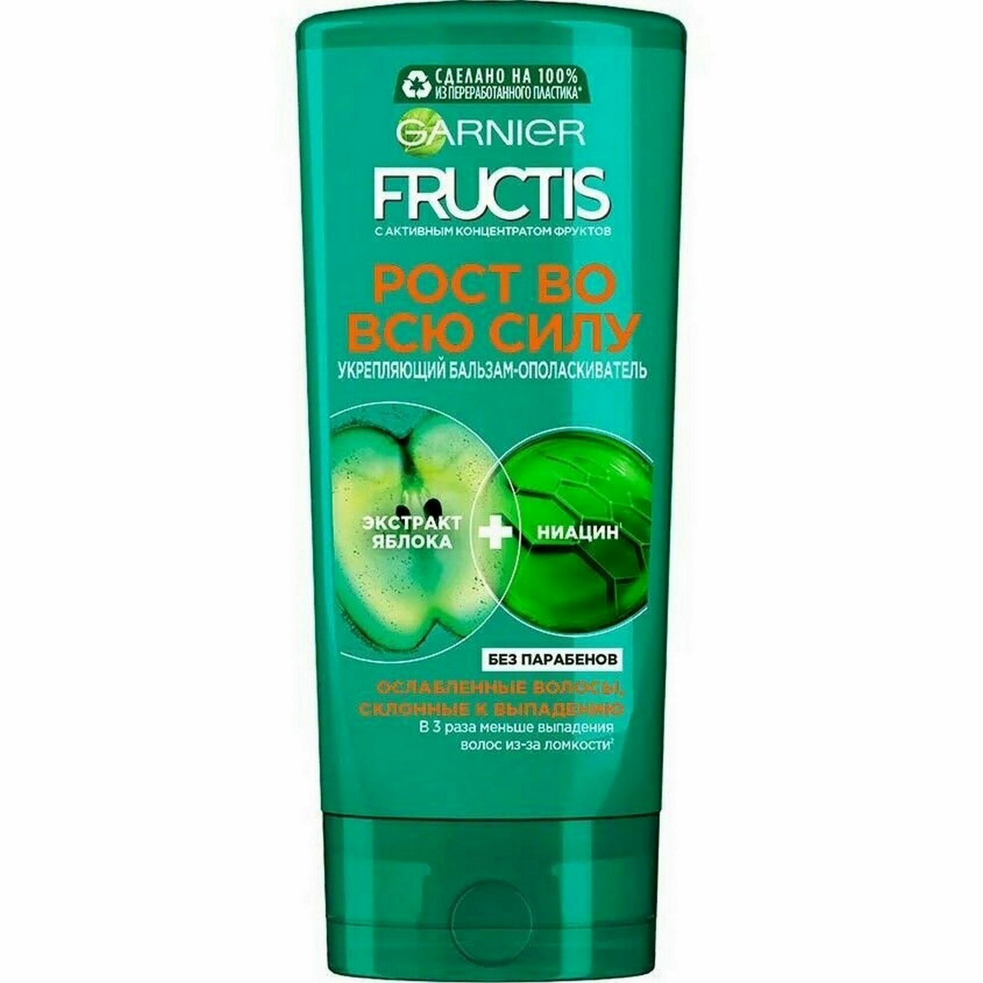 Garnier Fructis Бальзам-ополаскиватель для волос Рост во всю Силу укрепляющий для ослабленных волос, склонных к выпадению, с экстрактом яблока и ниацином, 387 мл