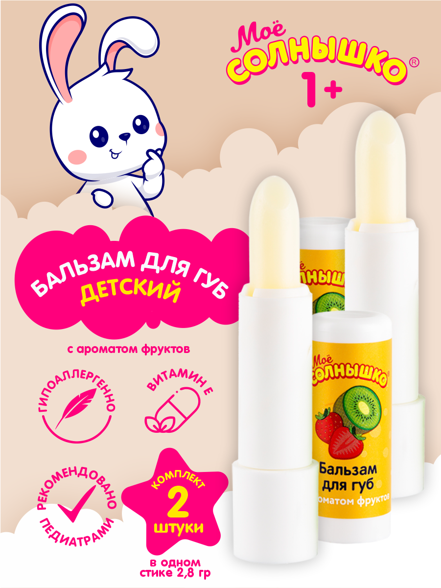 10 цен на Бальзам для губ детский с ароматом фруктов Мое Солнышко 2,8 гр. х 2 шт.