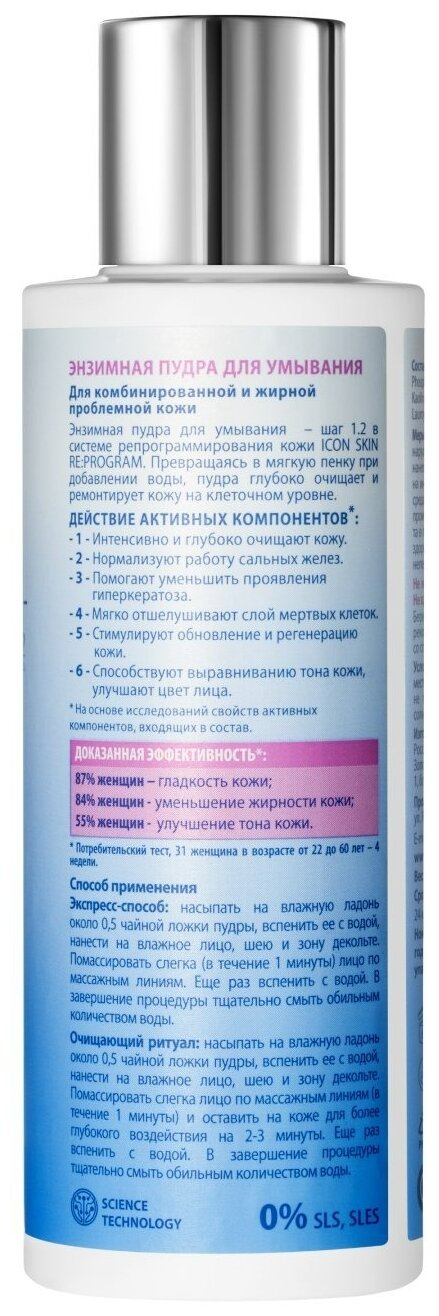 ICON SKIN / Энзимная пилинг-пудра для умывания для комбинированной, жирной и проблемной кожи, 75 г информация: