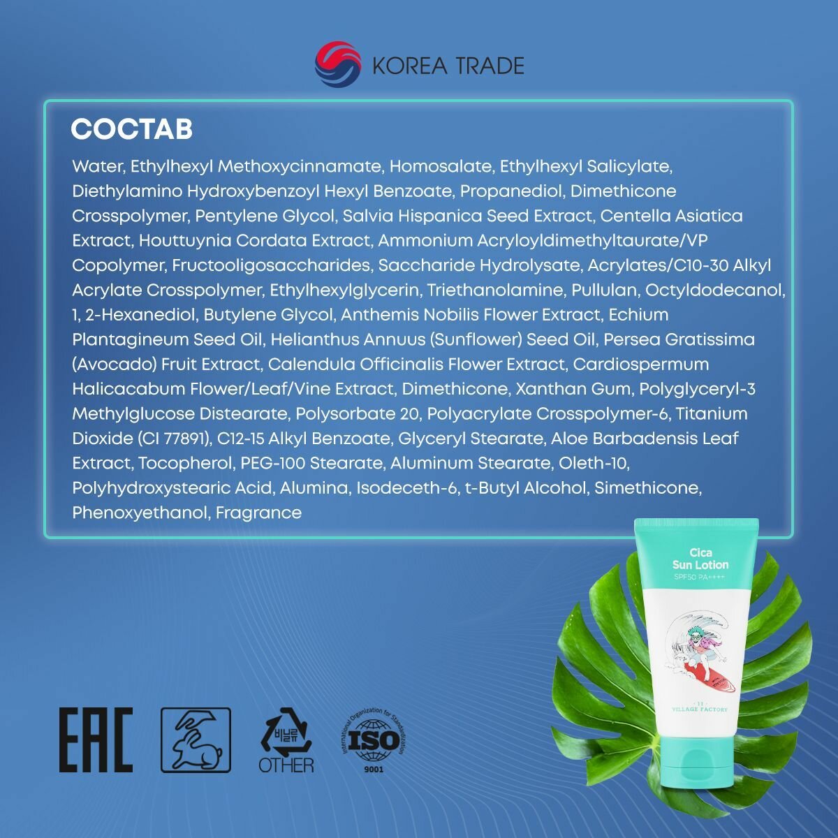 VILLAGE 11 FACTORY Waterproof Cica Sun Lotion SPF50 PA++++ Солнцезащитный лосьон водостойкий информация: