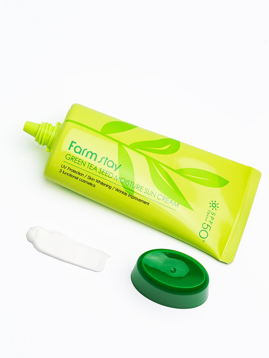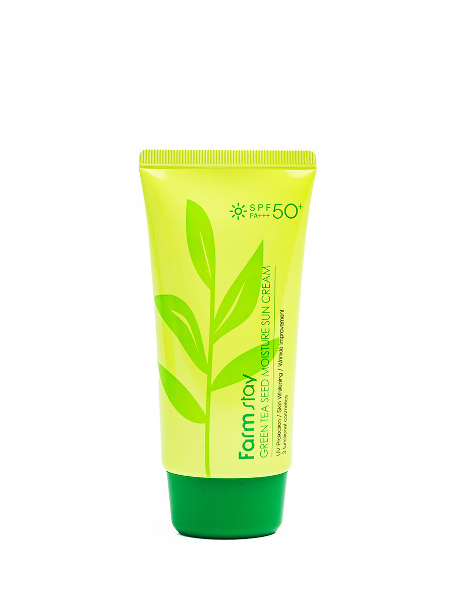 10 цен на FarmStay Крем солнцезащитный для кожи лица, шеи и тела с семенами зеленого чая SPF 50/PA+++, корейская косметика. 70 г