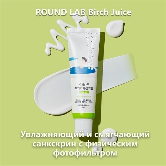 Отзывы на Солнцезащитный крем Round Lab Birch Juice Moisturizing Mild-Up Sunscreen SPF 50+ PA++++ Защита от солнца для лица и тела с берёзовым соком, Увлажняющий, Корея 50 мл