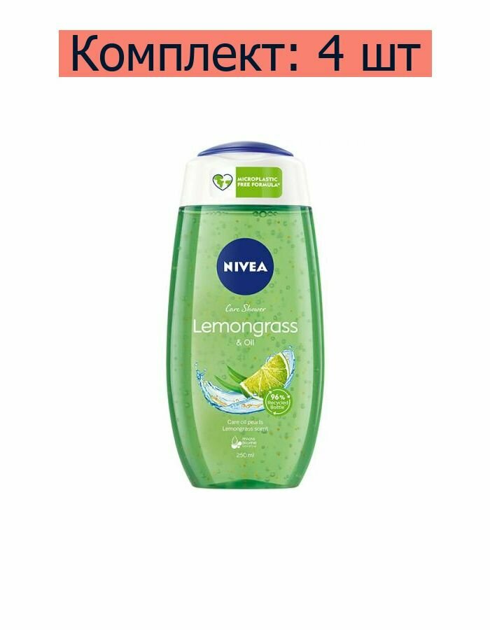 Nivea Гель-уход для душа Свежесть лемонграсса с капельками масла, 250 мл, 4 шт информация: