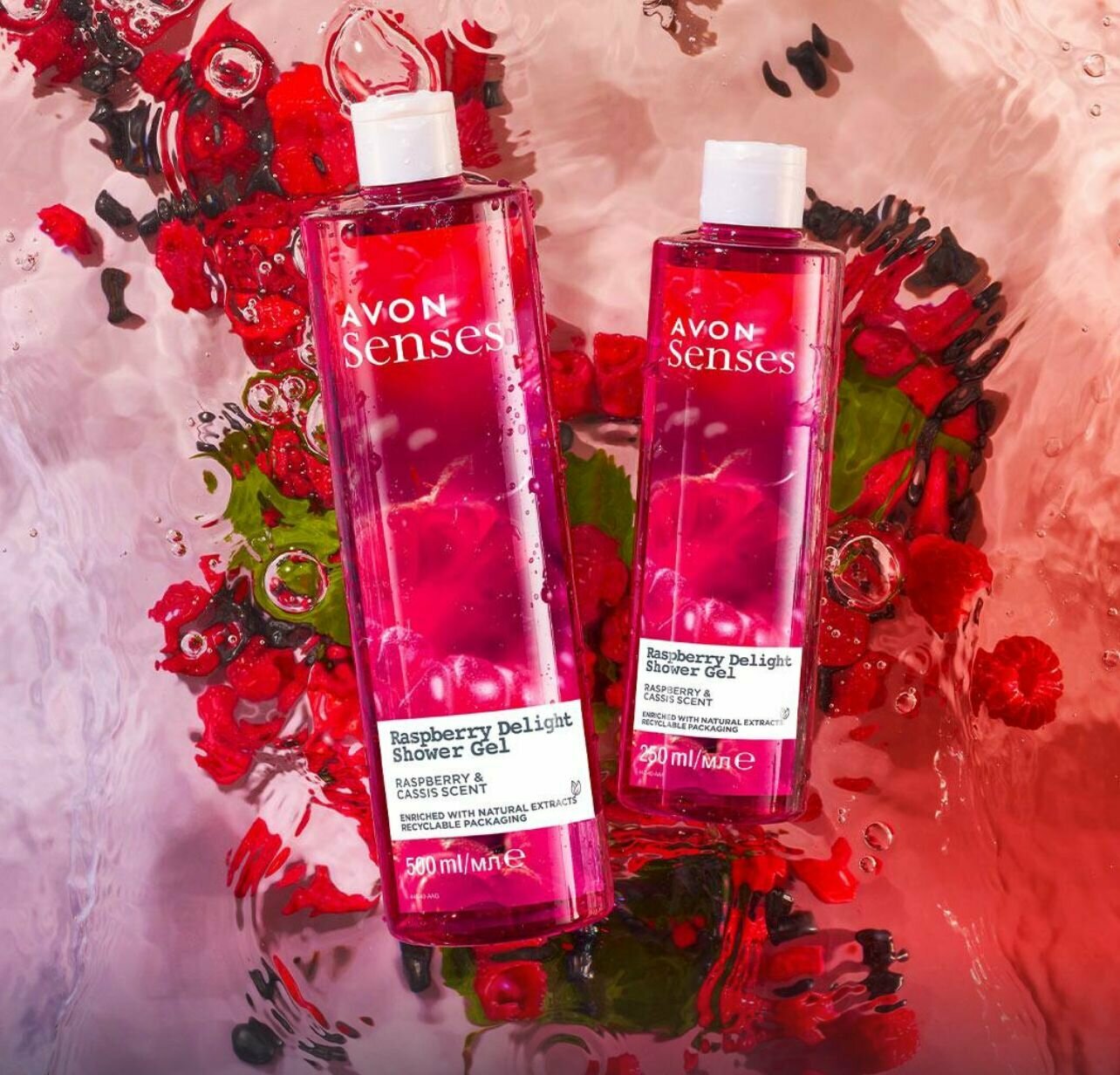 Женский увлажняющий Гель для душа AVON Малиновое удовольствие с ароматом малины и черной смородины 500 мл для чувствительной и сухой кожи