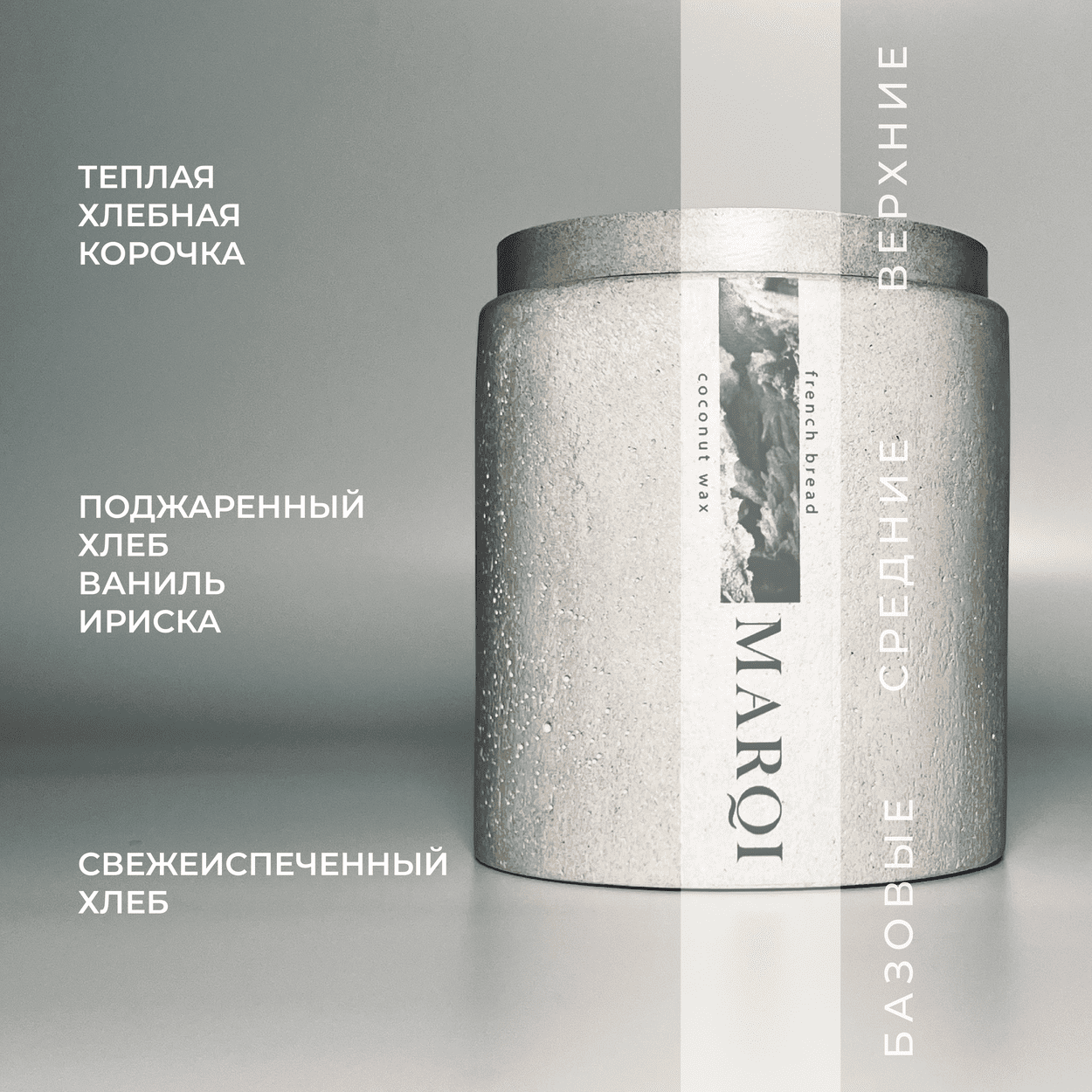 Свеча ароматическая с ароматом "Французская пекарня" (Хлеб, French bakery) из кокосового воска в гипс-бетоне с крышкой с деревянным фитилем 150мл информация: