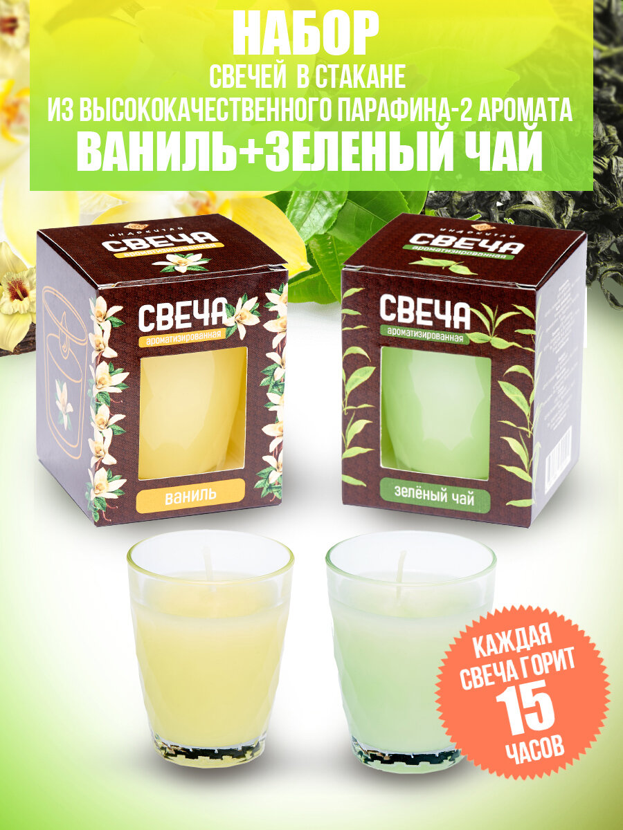 Набор аромасвечей в стакане Индокитай :Зеленый чай и Ваниль информация: