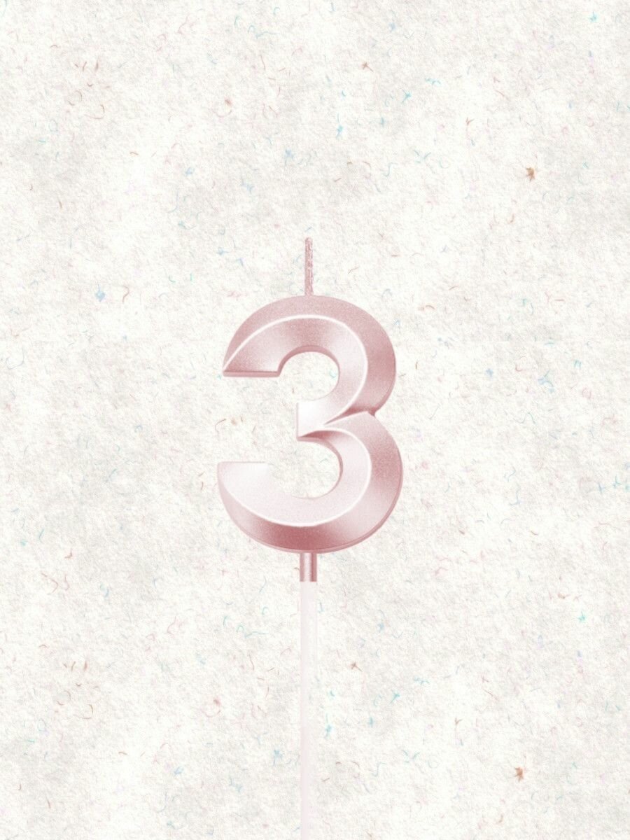 Свеча для торта цифра "3 года" 12см пудровый/ грани информация: