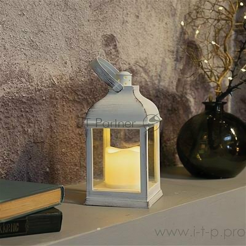 Декоративный фонарь со свечкой, белый корпус, размер 10.5х10.5х22,35 см, цвет Теплый Белый 513-054 информация: