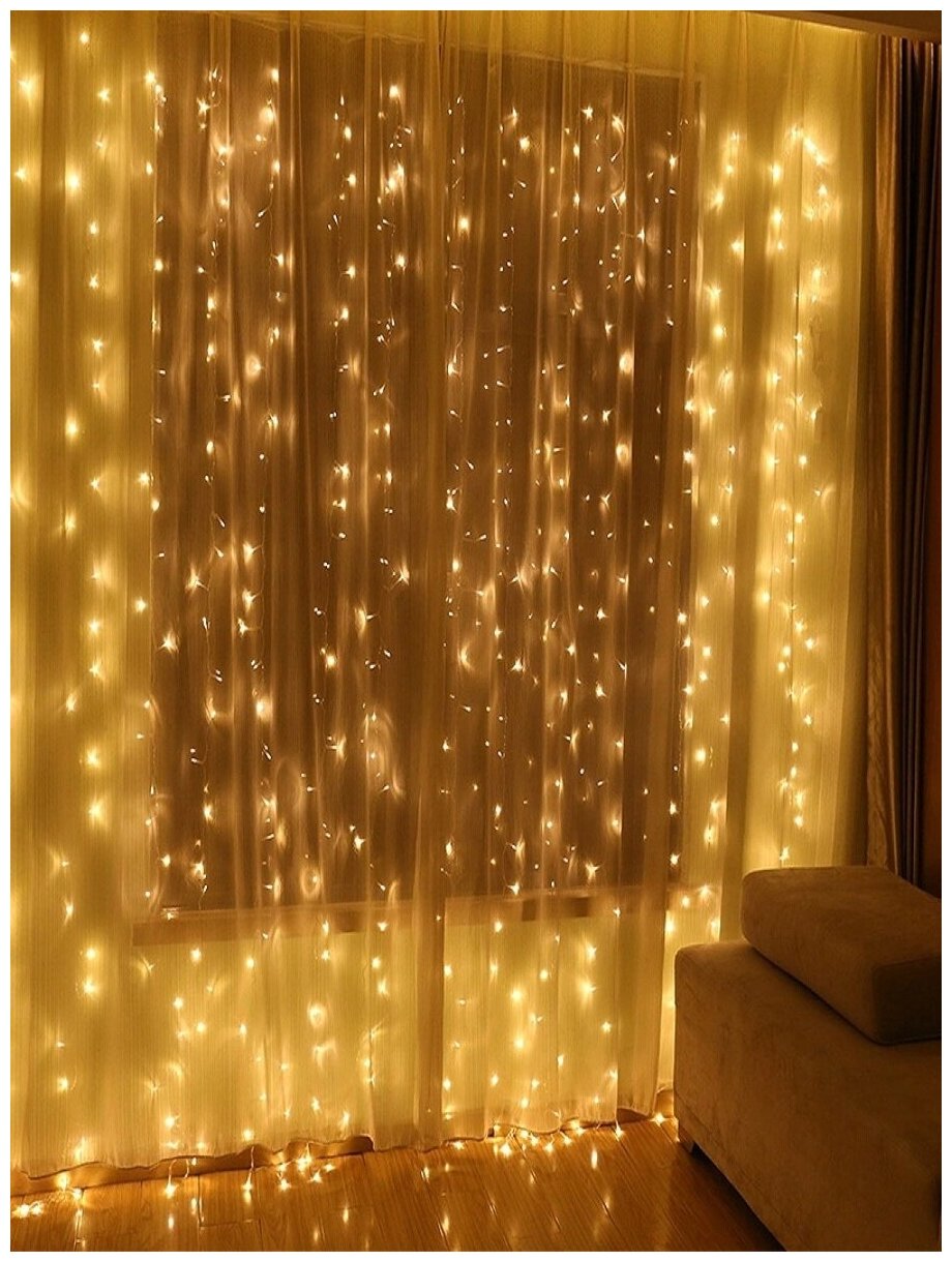Отзывы на Гирлянда светодиодная Занавес/Штора/на окно 3 на 3 метра, Желтая