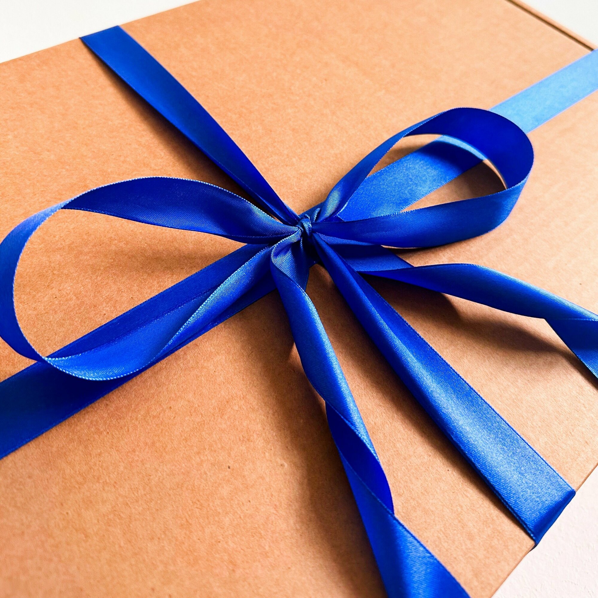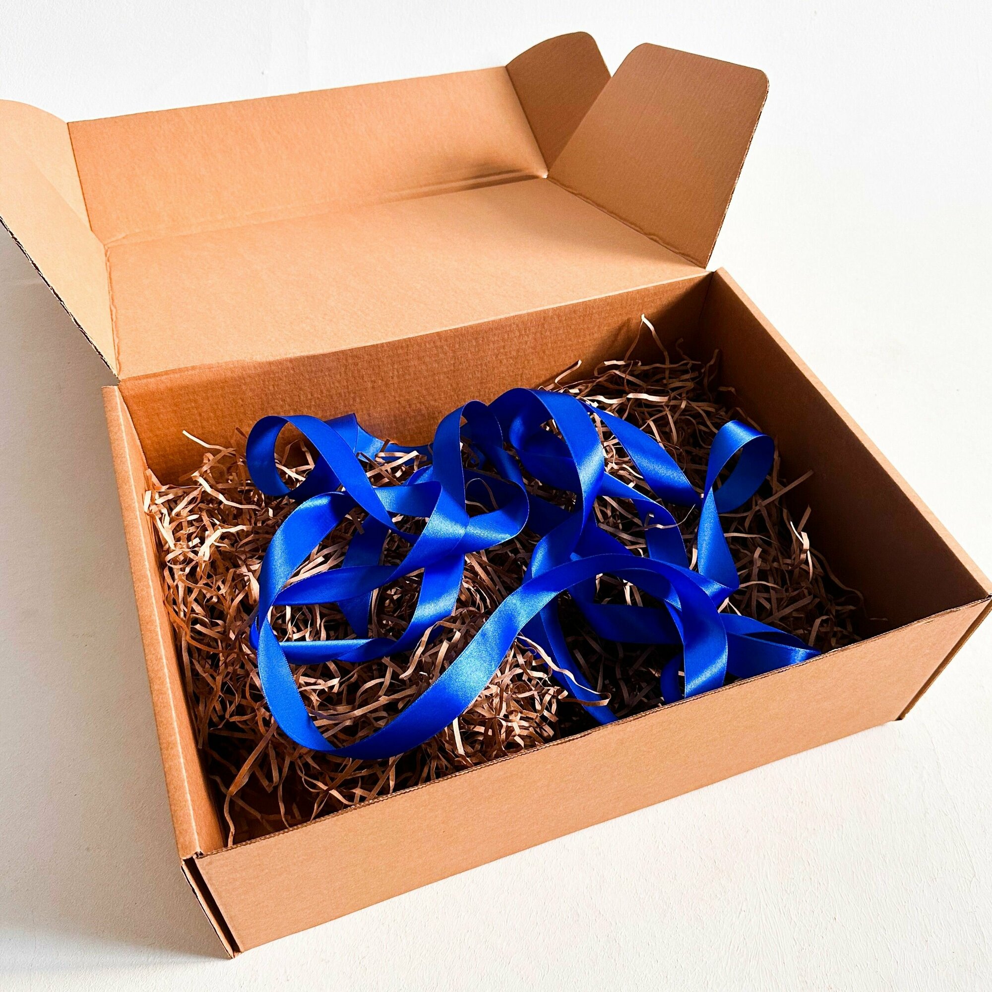 2 штуки - Подарочная коробка GILEV 44x32x15см с синей лентой и наполнителем крафт 1 528 ₽