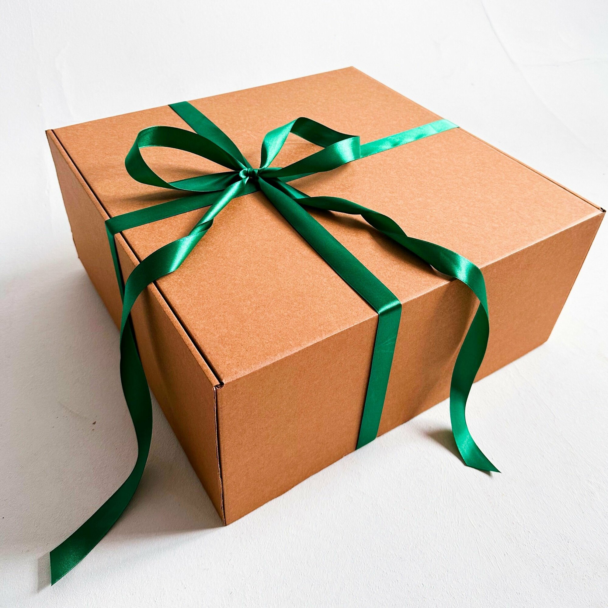 Огромная подарочная коробка GILEV 45х45х20см с зеленой лентой и наполнителем крафт информация: