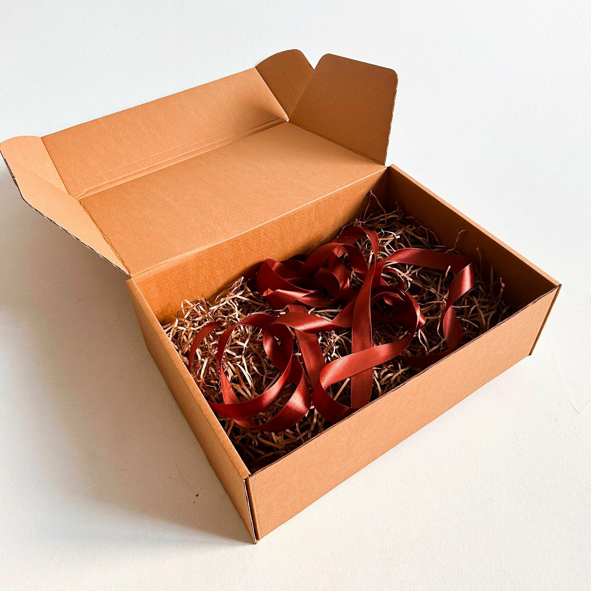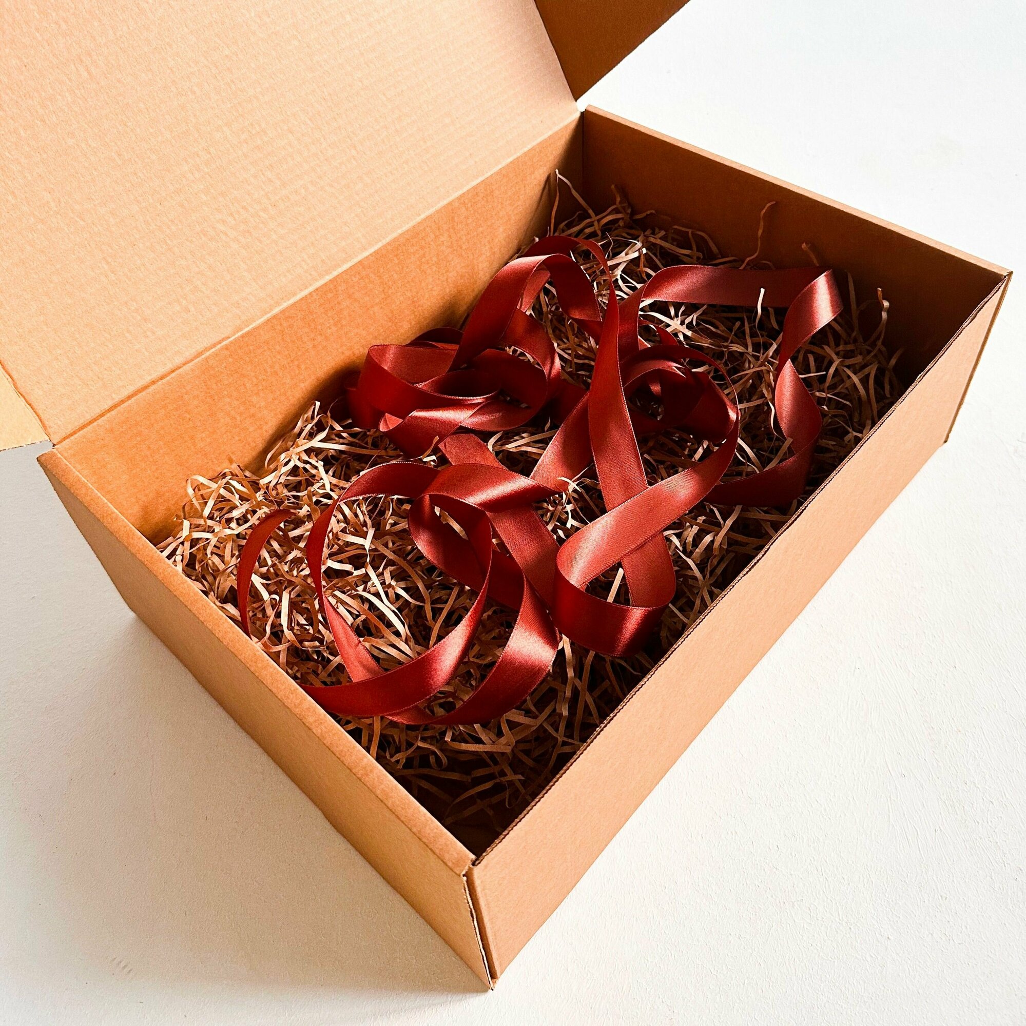 Отзывы на 2 штуки - Подарочная коробка GILEV 44x32x15см с коричневой лентой и наполнителем крафт