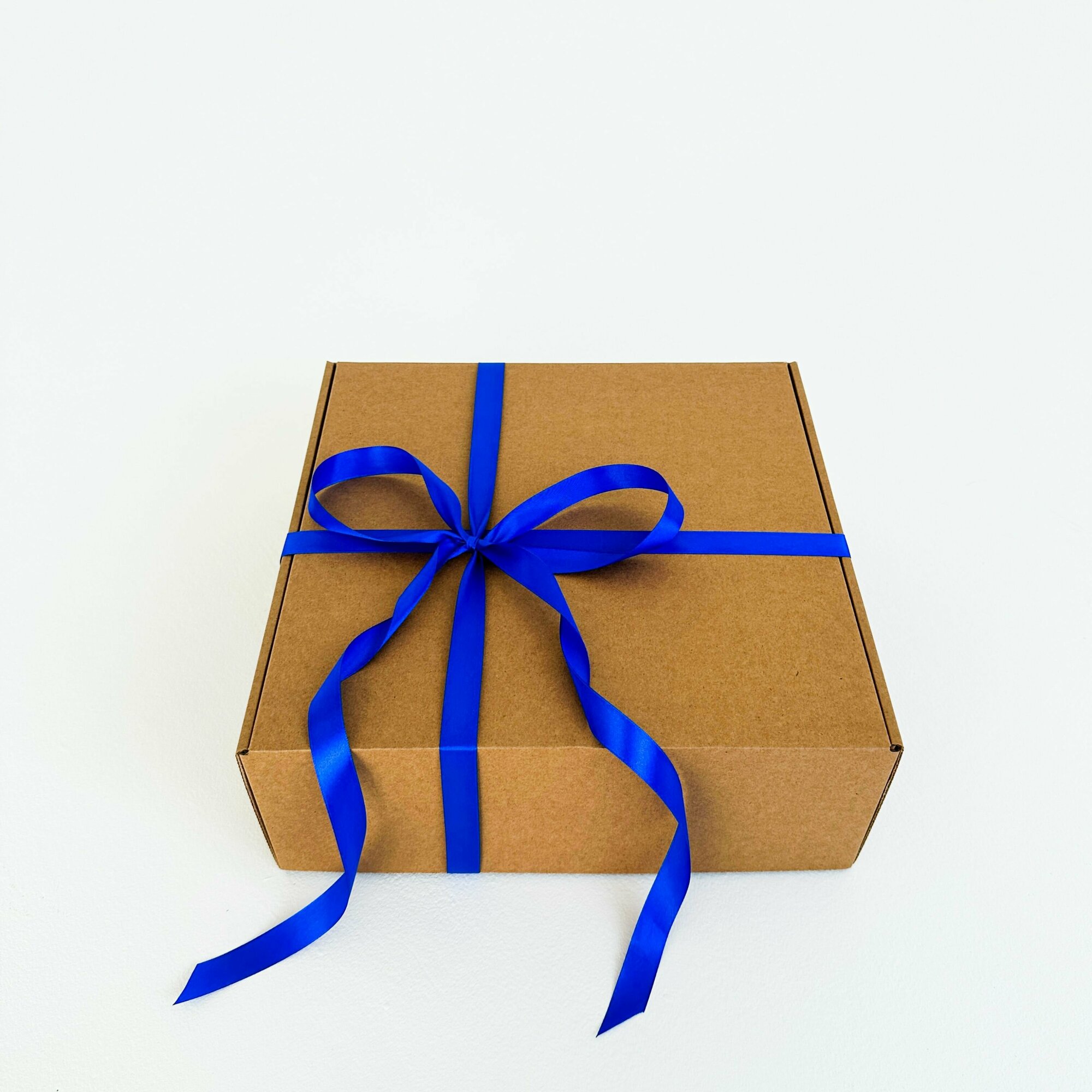 2 штуки - Огромная подарочная коробка GILEV 45х45х20см с синей лентой и наполнителем крафт 1 999 ₽