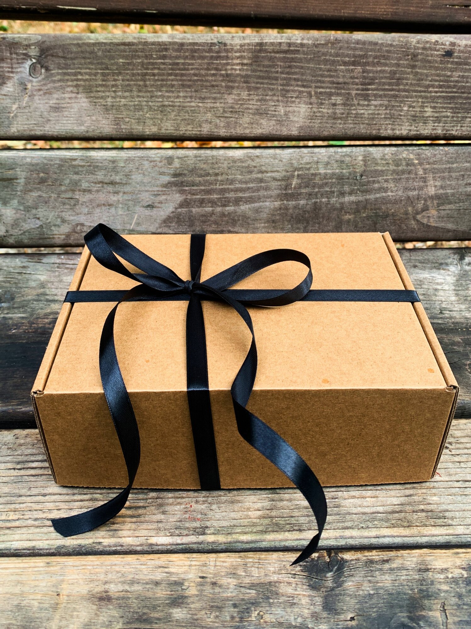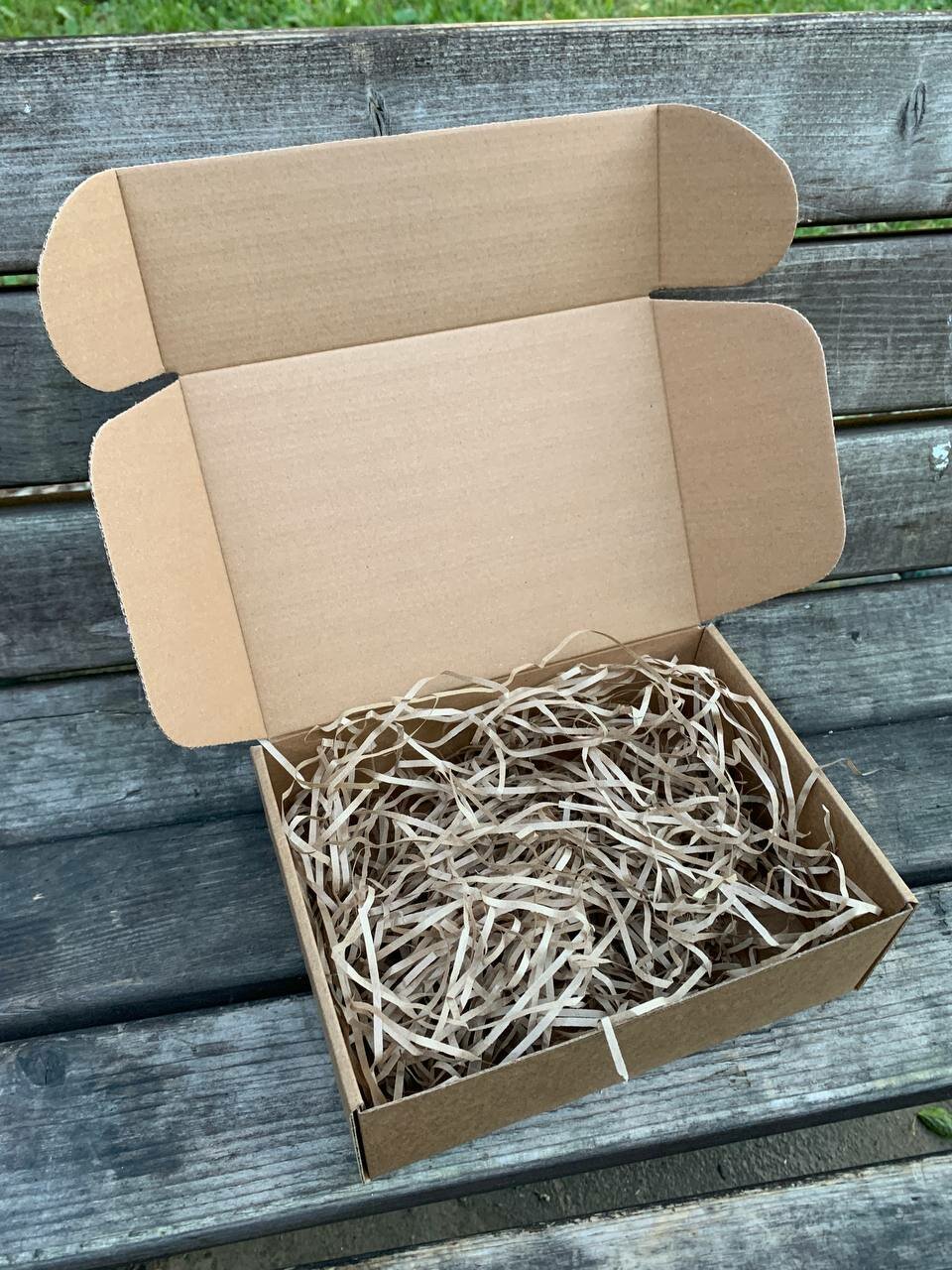 Подарочная коробка GILEV 22х16х8см с наполнителем крафт и черной лентой информация: