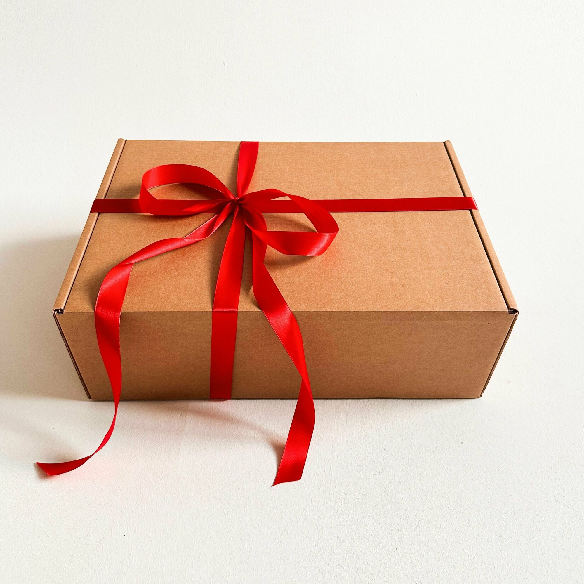 Отзывы на 2 штуки - Подарочная коробка GILEV 44x32x15см с красной лентой и наполнителем крафт