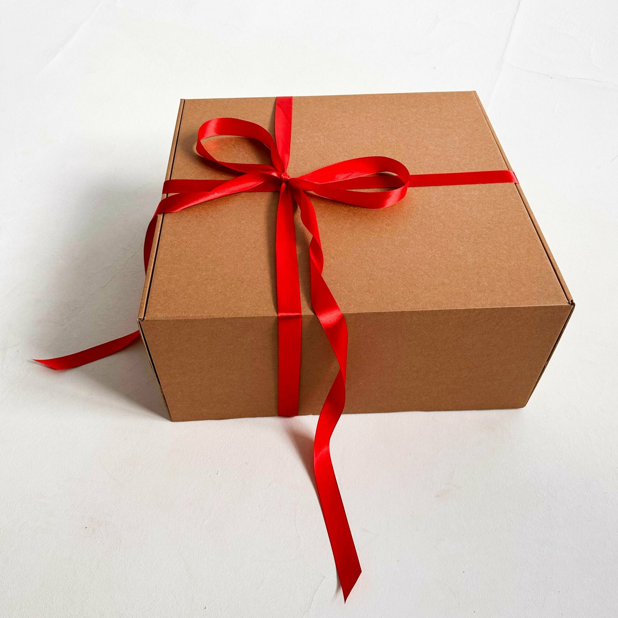 Подарочная коробка GILEV 32x32x12см с наполнителем и коричневой лентой 544 ₽