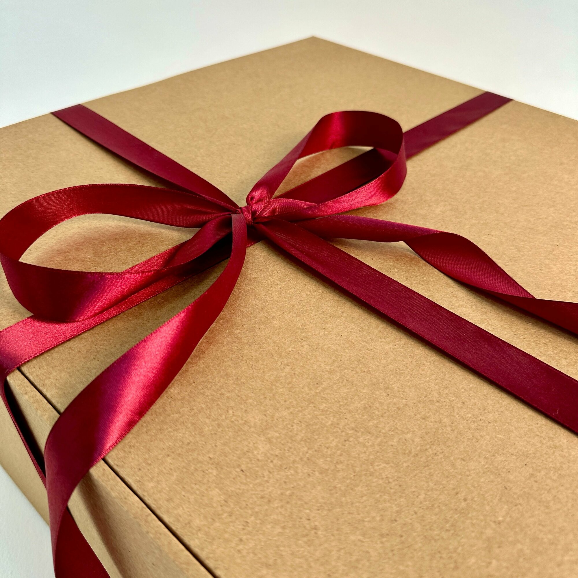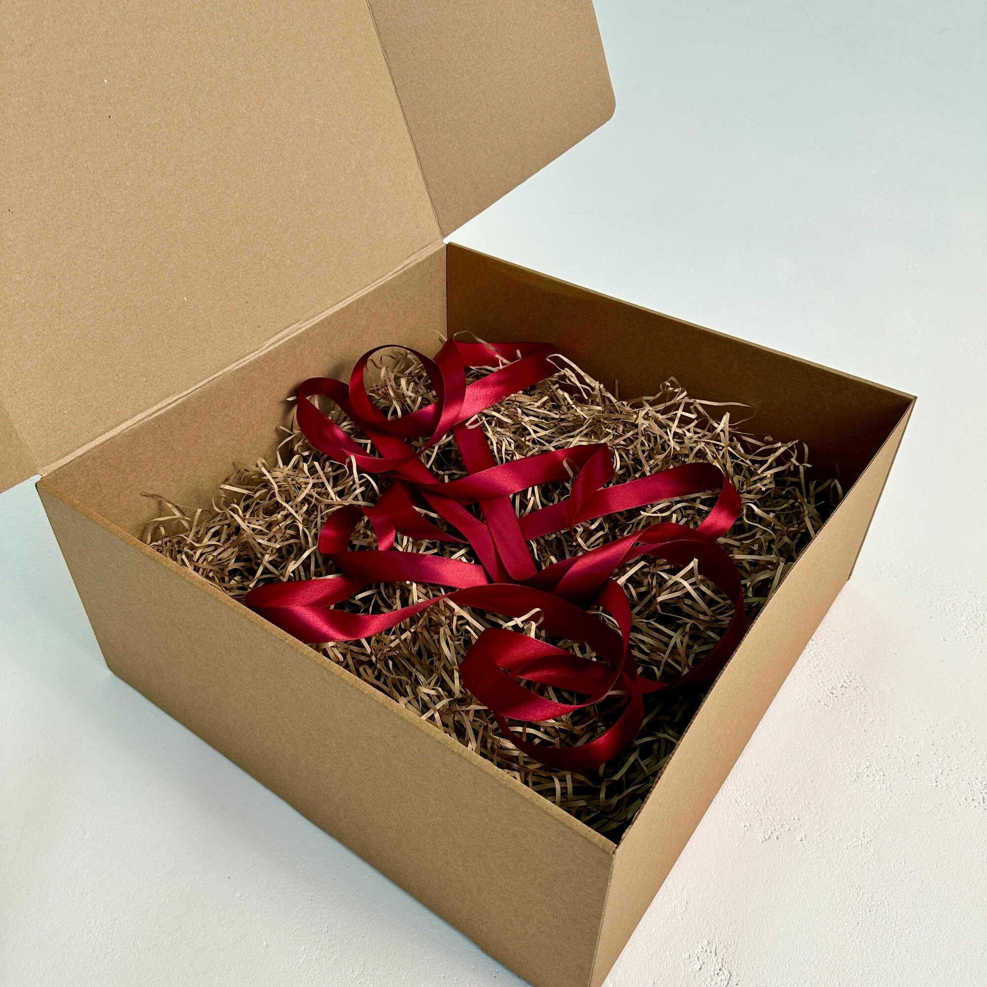 Огромная подарочная коробка GILEV 45х45х20см с бордовой лентой и наполнителем крафт информация: