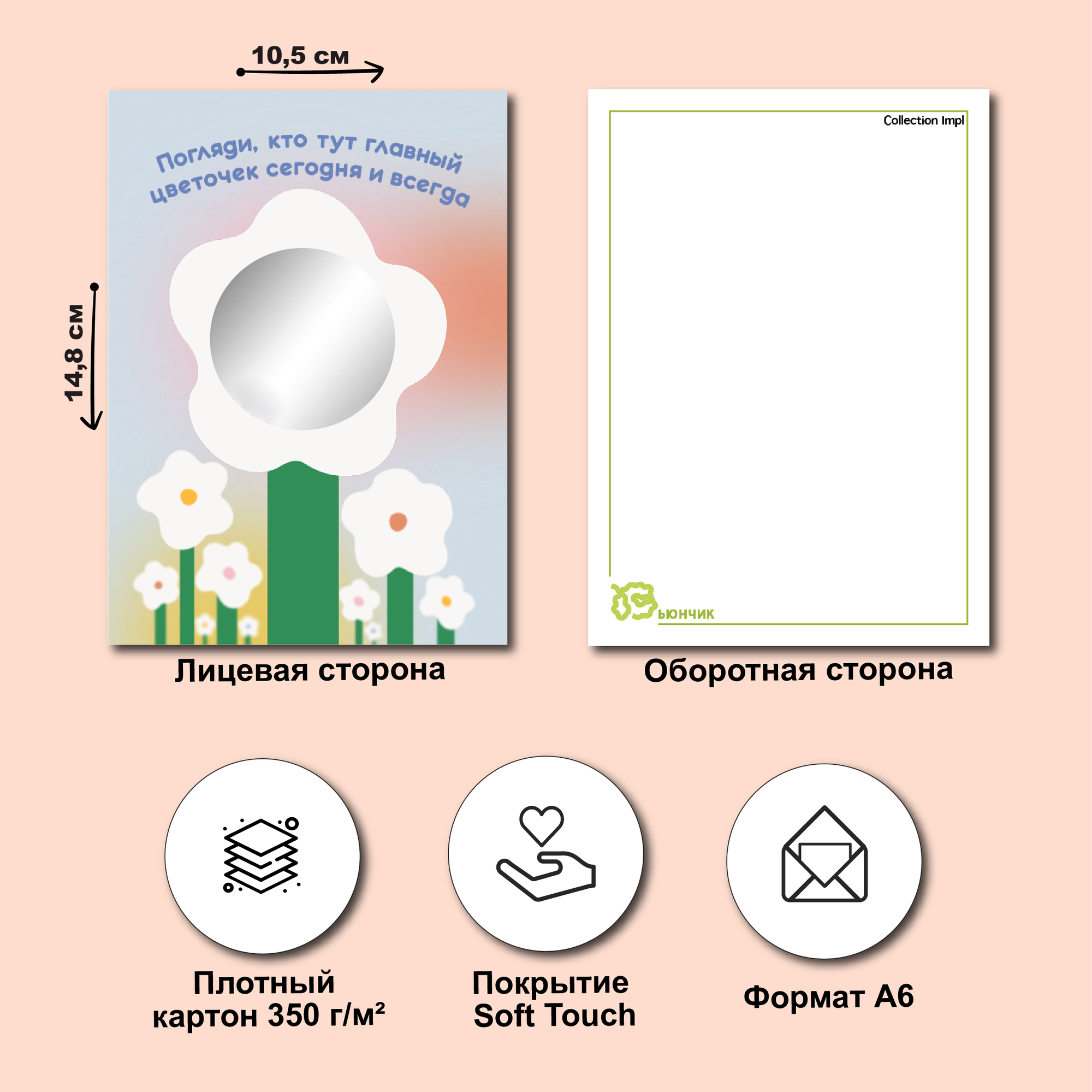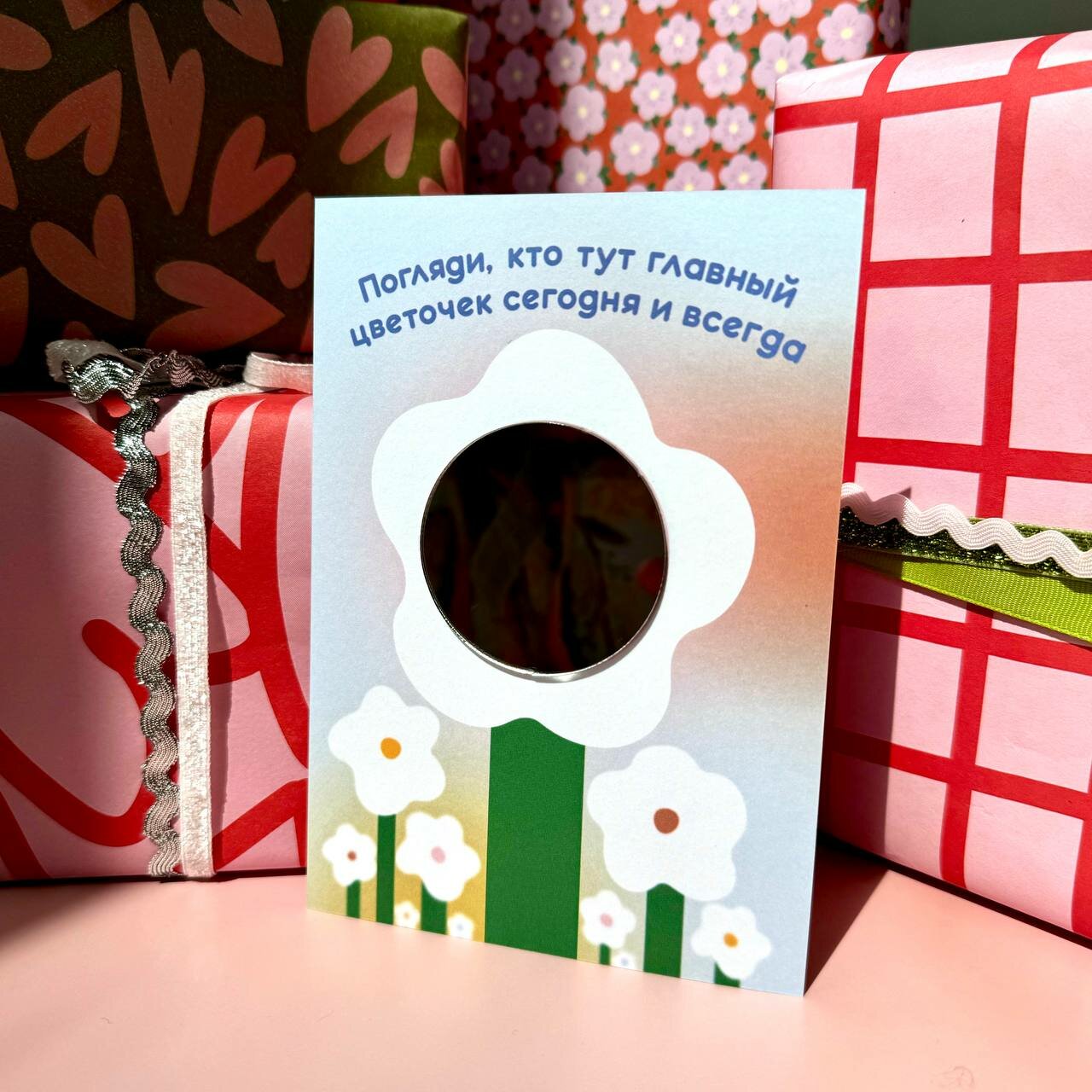 Открытка с зеркалом 10х15 см "Кто тут главный цветочек" 370 ₽