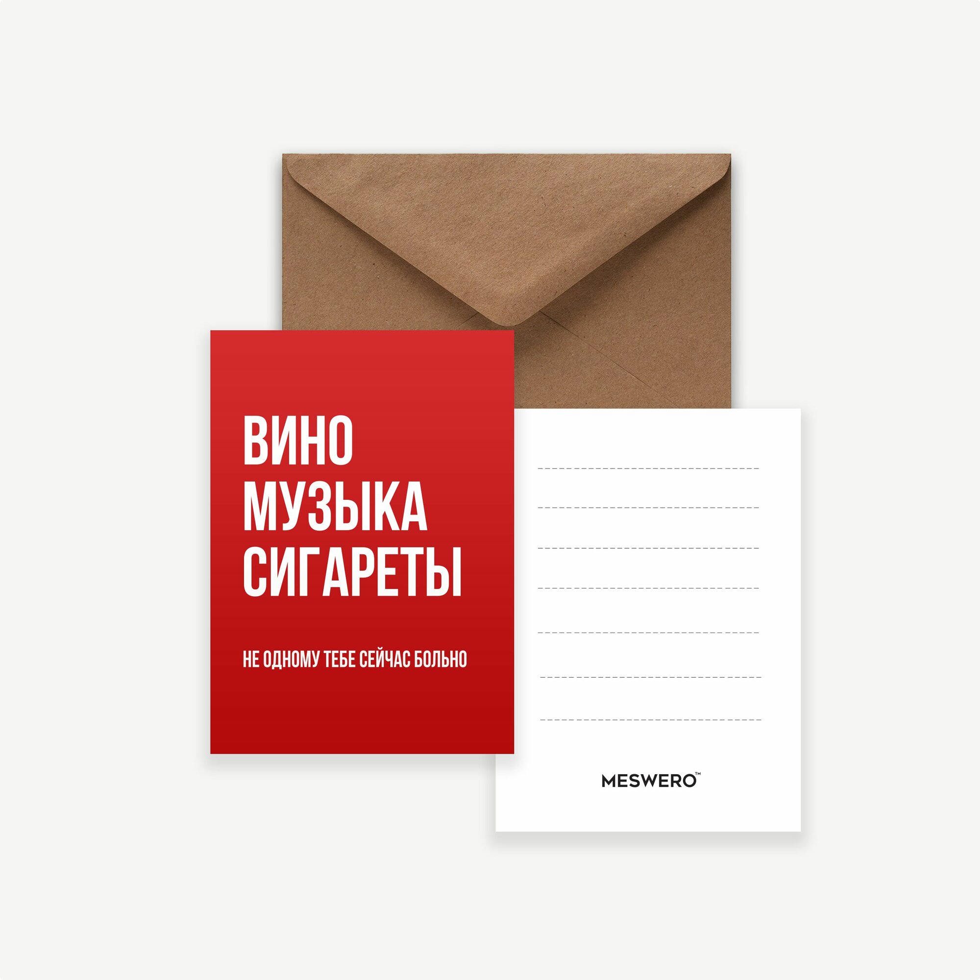 Дизайнерская открытка Meswero / Вино, музыка / с подарочным конвертом / 10х15 219 ₽