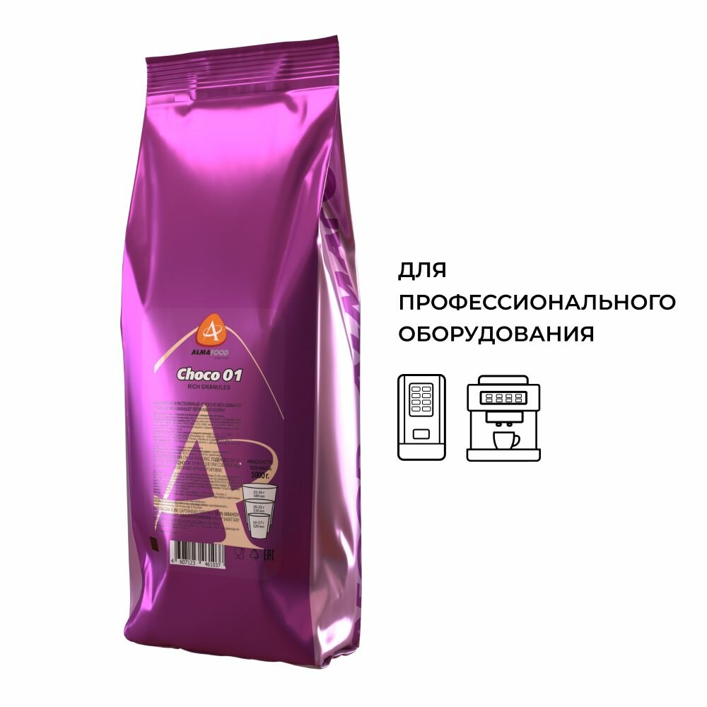 Горячий шоколад Almafood CHOCO 01 RICH GRANULES для вендинга растворимый напиток 1 кг информация: