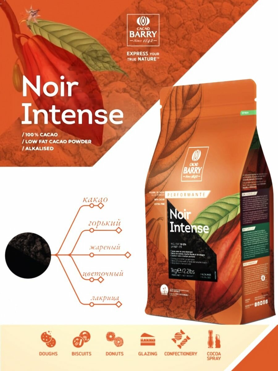 Какао порошок натуральный черный Noir Intense Франция, для горячего шоколада, жирность 10-12%, 1кг 3 150 ₽