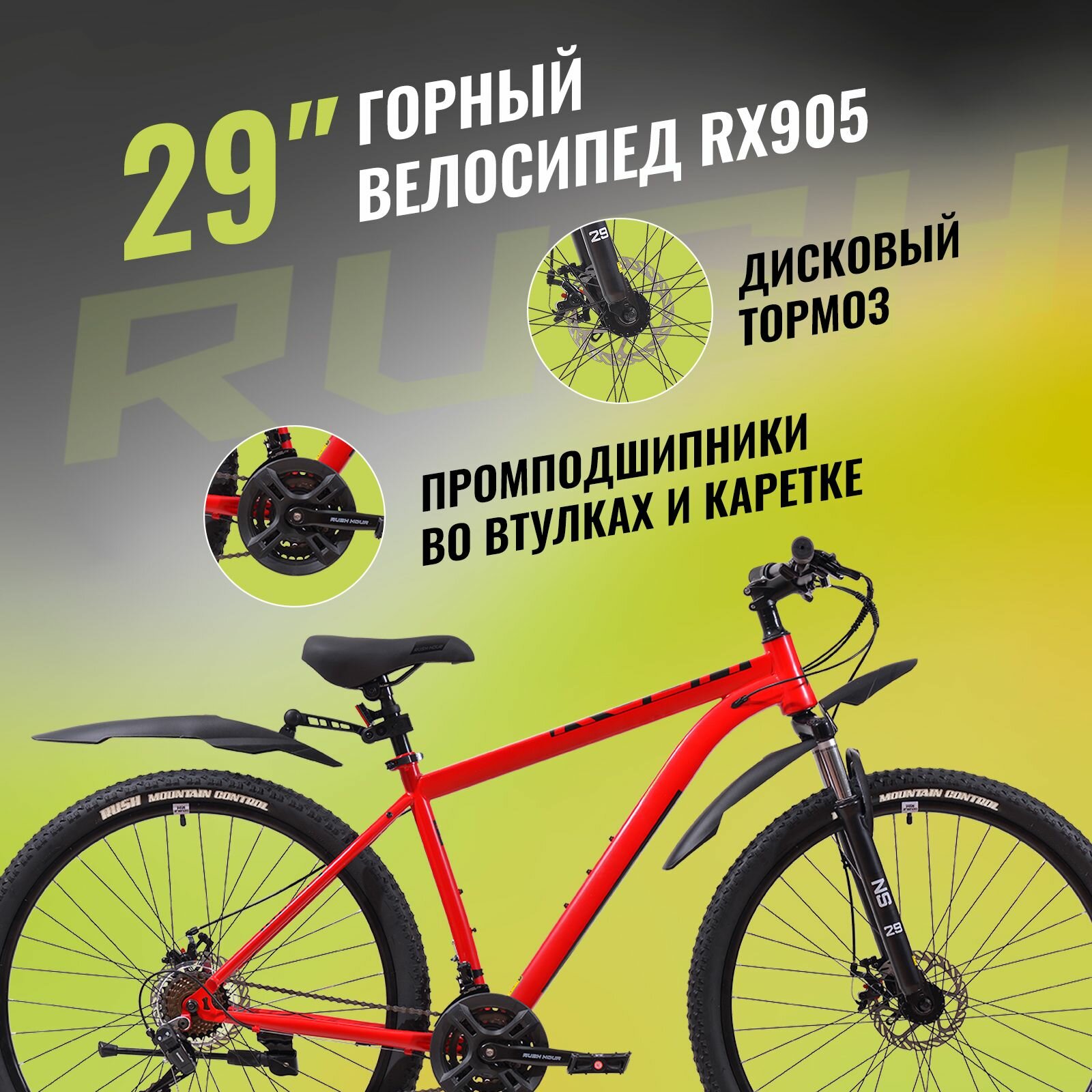 Отзывы на Велосипед взрослый горный дисковый 29" RUSH HOUR RX 905 21 скорость красный рама 17" рост 160-175 см. скоростной мужчине спортивный с амортизацией найнер переключатель SHIMANO