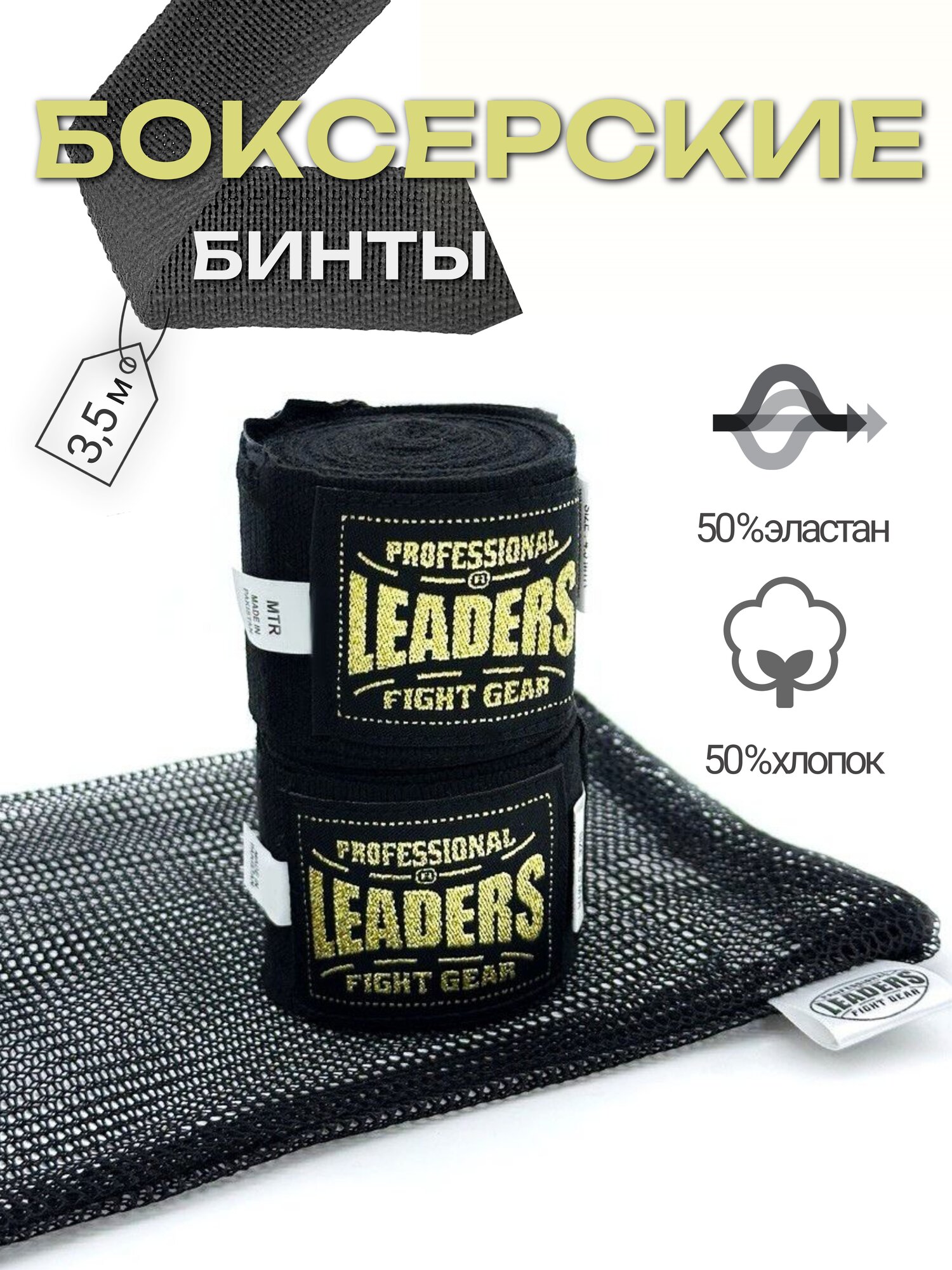 10 цен на Бинты боксерские LEADERS Semi elastic (50% хлопок/50% эластан, черный) (3,5 метра)