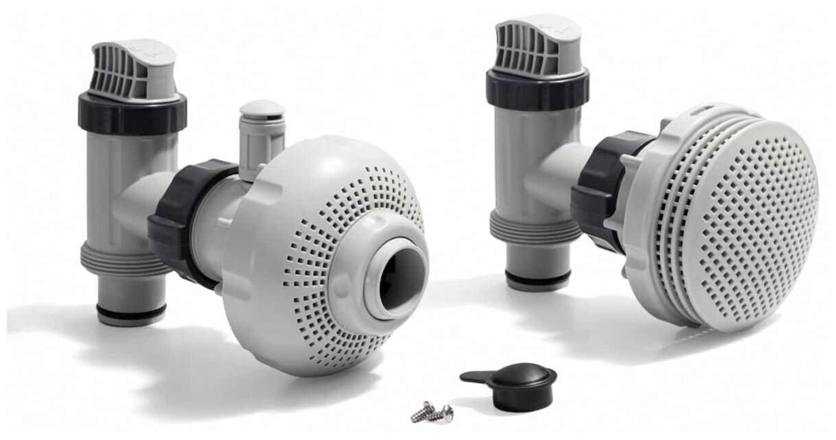 | Комплектация | Соединитель с функцией гидро-аэрации Intex 12355, впускная решетка сетчатая Intex 12198 и соединитель с гайкой и резиновой прокладкой Intex 11236, а также плунжерный клапан Intex 10747 2шт. |