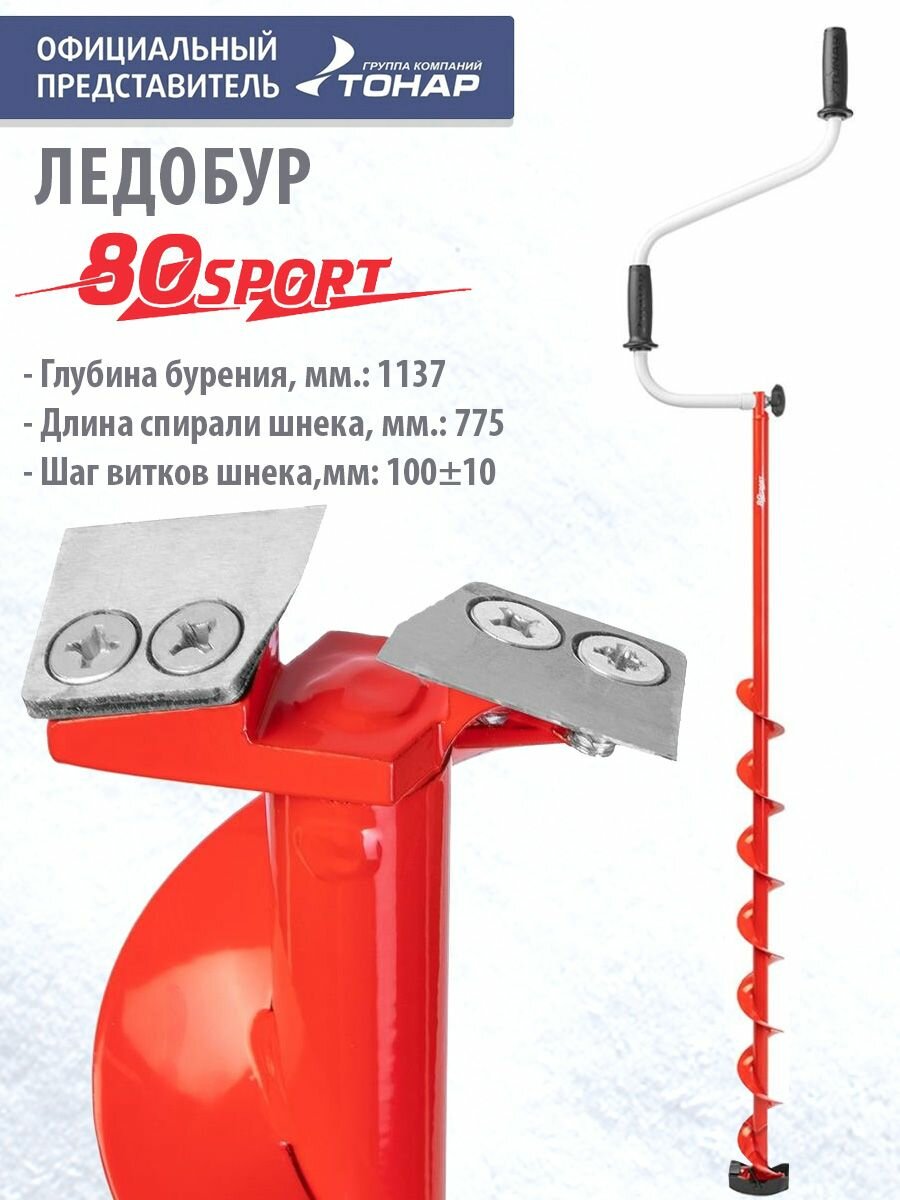 10 цен на Ледобур ЛР-080 Спорт левое вращение, цельнотянутый шнек Тонар