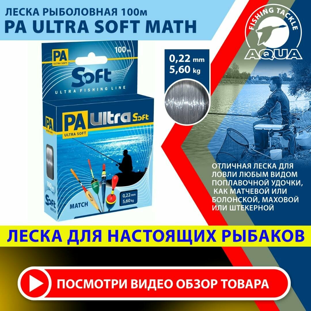 Отзывы на Леска рыболовная AQUA PA Ultra Soft Match. Для ловли на удочку (матчевую, болонскую или маховую) 0,22мм / 5,60кг / 100м