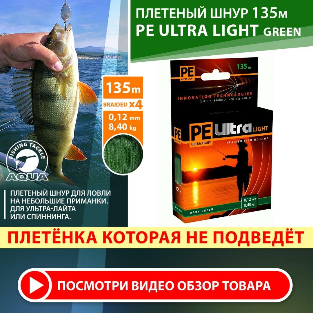 Отзывы на Плетеный шнур для рыбалки AQUA PE Ultra Light Dark Green 135m 0.12mm 8.4kg